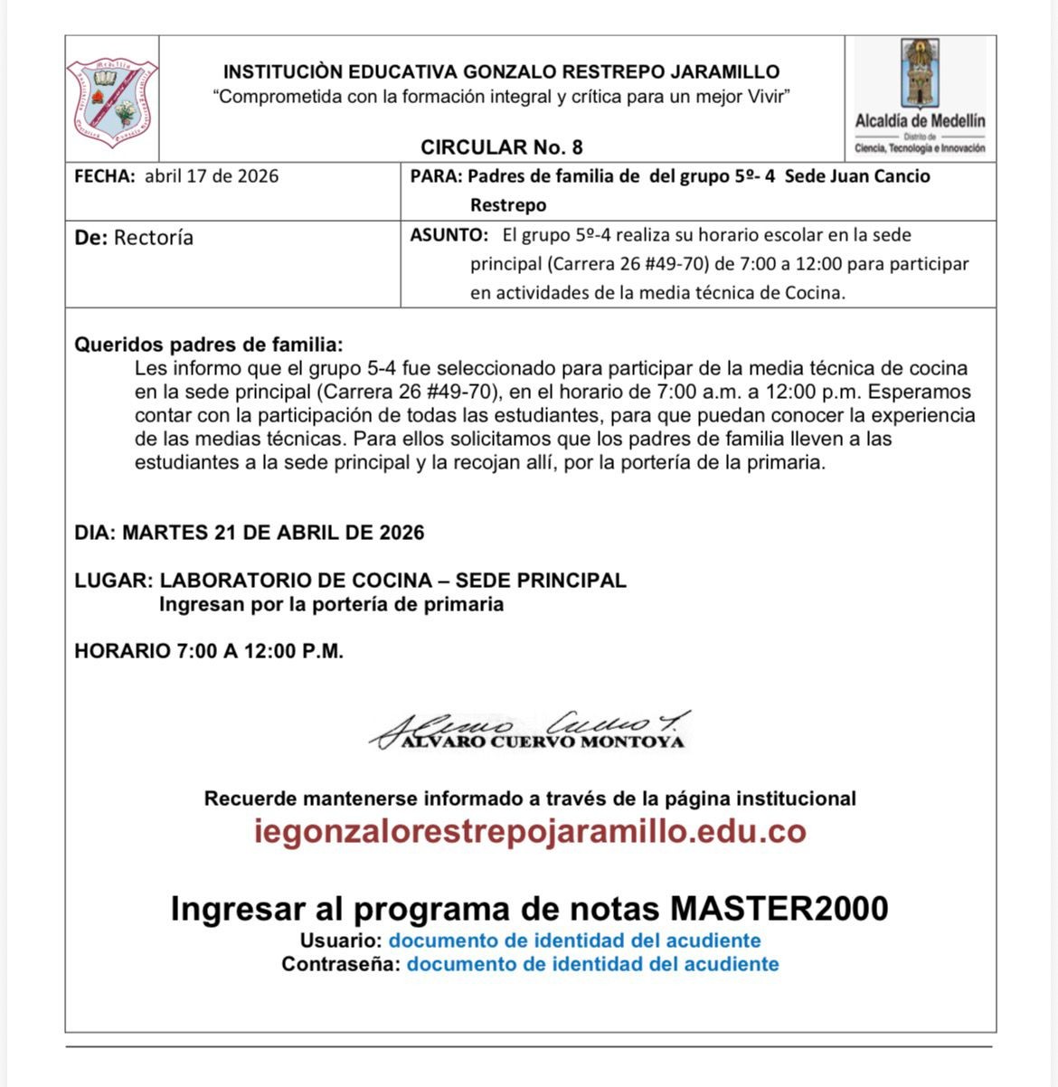 CUPOS PARA MATRICULA 2026